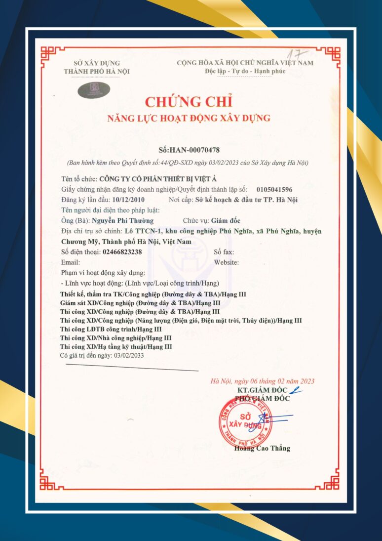 CÔNG TY CỔ PHẦN THIẾT BỊ VIỆT Á